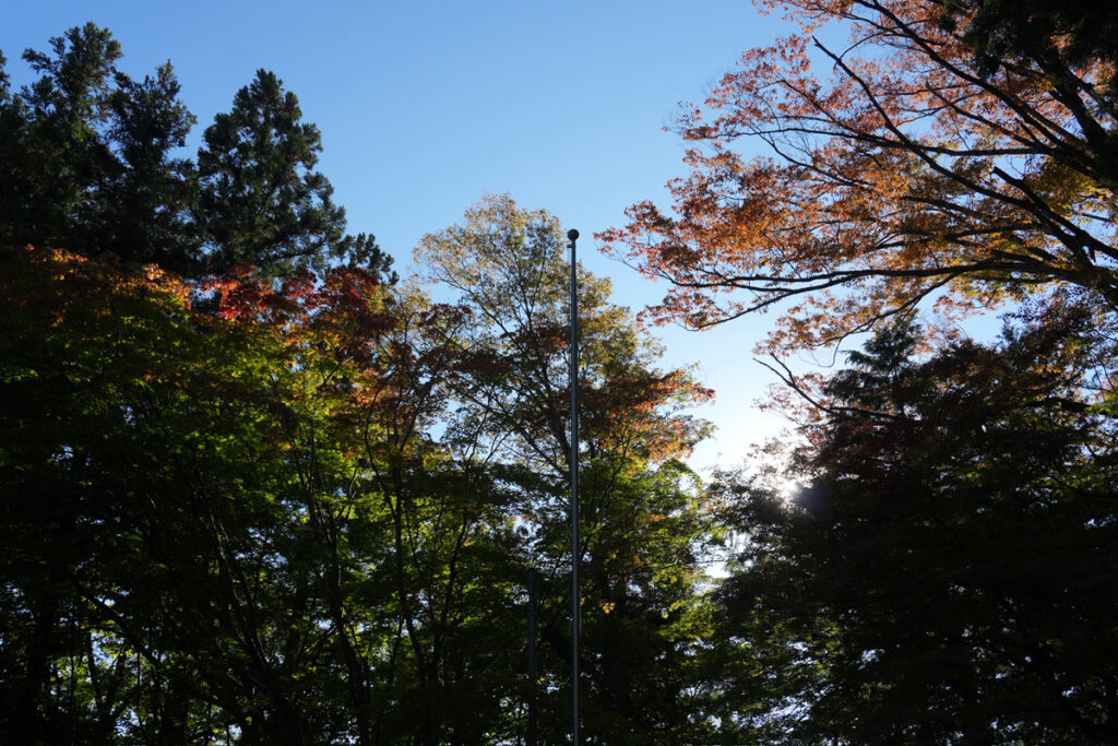 Inside the shrine grounds, the leaves have just begun to turn red and yellow, creating a beautiful scene.